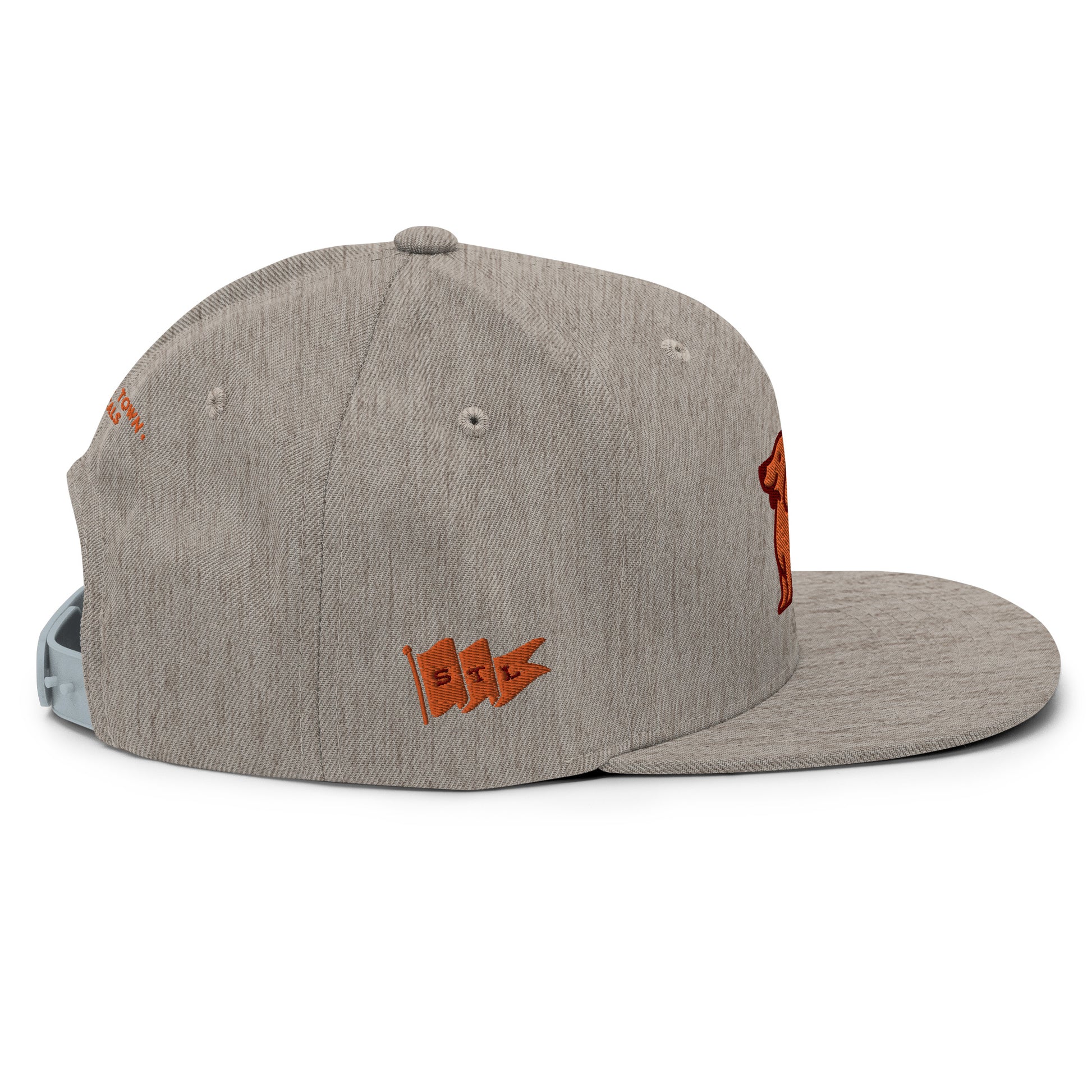 This hat is structured with a classic fit, flat brim, and full buckram. The adjustable snap closure makes it a comfortable, one-size-fits-most hat.